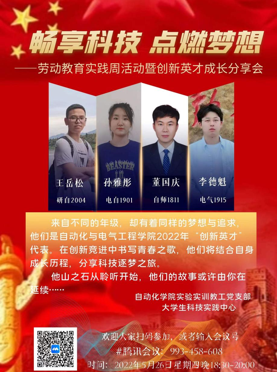自动化与电气工程学院举办“畅享科创,点燃梦想”创新英才成长分享会