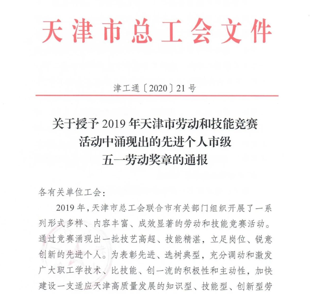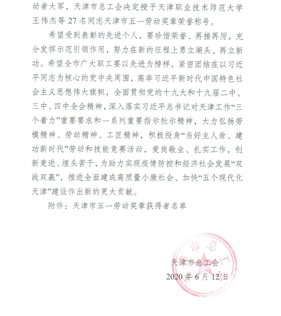 【立德树人·奋进担当】天津市“五一劳动奖章”获得者:王伟杰 张丛