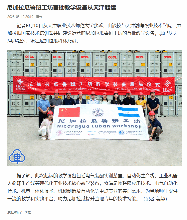 津云:尼加拉瓜鲁班工坊首批教学设备从天津起运